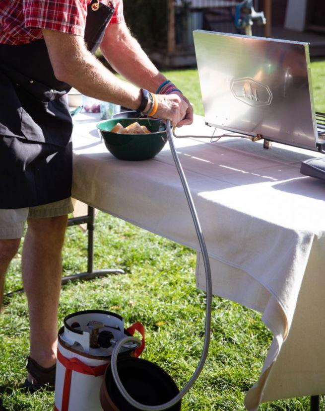 5ft braided stainless steel hose conveniently connects portable appliances to a larger propane tank