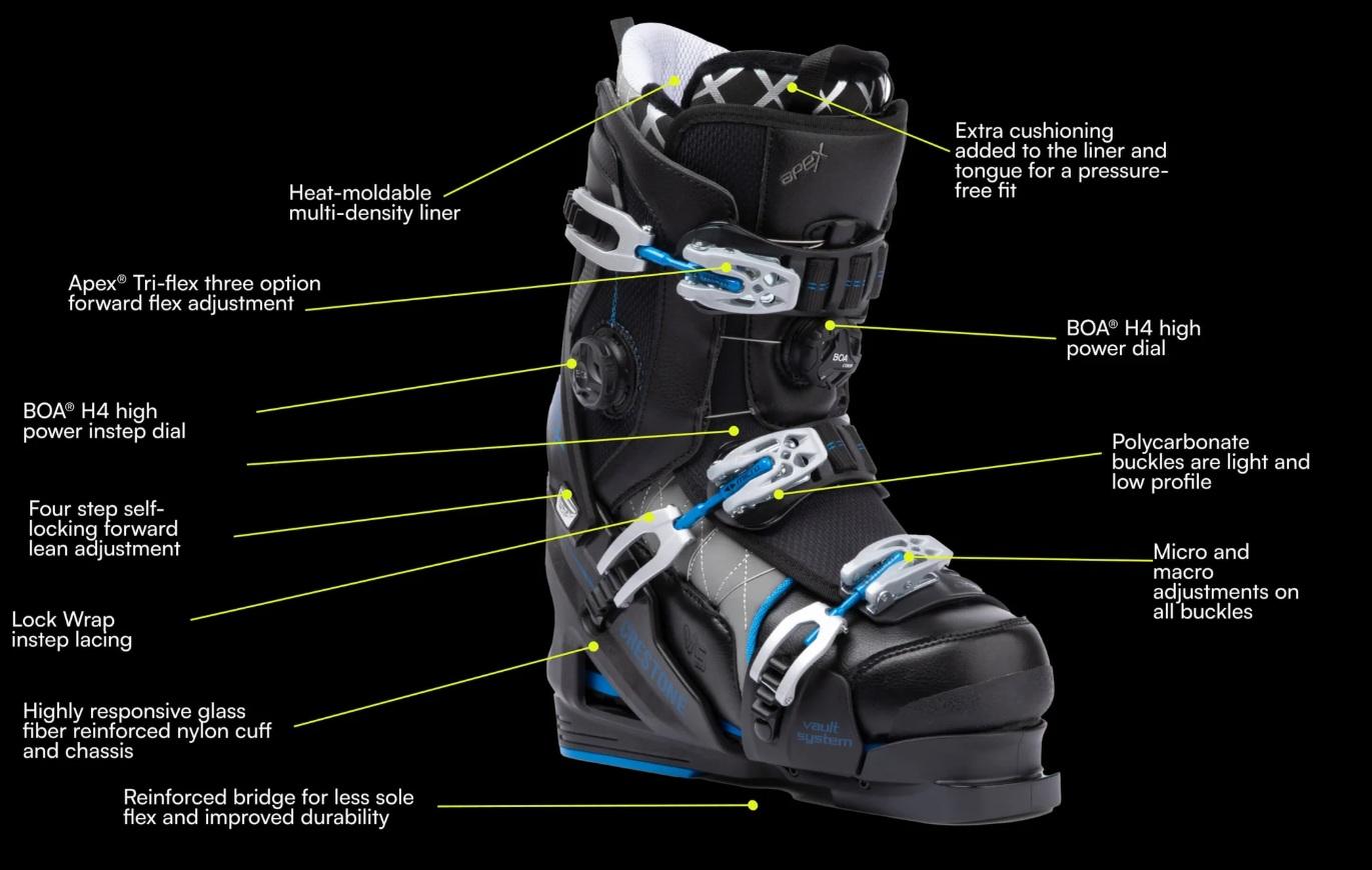 The key to all day big carving turns, taking on the bumps, or having some fun on a powder day is a responsive boot with lots of added benefits: that boot is Crestone VS. Easy on and off, mobile, comfortable, warm and plenty of performance when called upon, the Crestone VS is our boot for black - blue - and green skiers that prefer to stay in the ropes and carve 'em big and fast while catching some bumps along the way. Now with two powerful H4 BOA® dials and LOCK WRAP lacing technology for max heel retention.