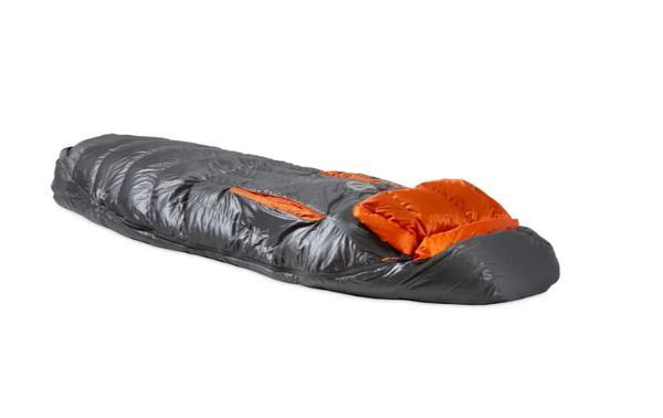 - Hood and footbox are reinforced with recyclable material treated with PFAS-free waterproofing to prevent tent condensation from soaking into the bag’s fabric.