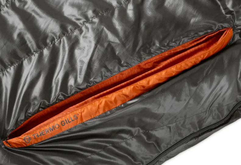 Disco includes a set of next-generation Thermo Gill™ vents on the chest to offer fine-tuned temperature control and a better outdoor sleeping experience. Each Gill features an interior and an exterior zipper with a draft-blocking intermediate layer, allowing several different configurations for dialing in the bag’s temperature without direct exposure to cold air. Our Blanket Fold™ draft collar at the neckline features a redesigned size and shape to further optimize sleep temperature. Tucked in, the Blanket Fold defiantly blocks any chill while mimicking the comfort of your bed at home. Pushed out, it helps dump excess heat instantly. Finally, Disco’s revamped design has baffles insulated with water-resistant, RDS-certified down, placed vertically along the torso for comfort and aligned horizontally below the waist to prevent down migration.