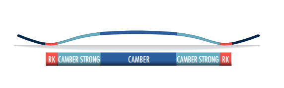 Quad Camber – The aggressive characteristics of camber blended with rocker on the tip and tail to make the board playful and agile in pow. Quad Camber built with a blend of different radiuses and is more forgiving than a regular camber but maintains the reactivity and pop.