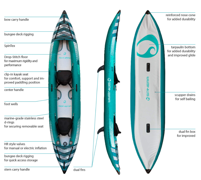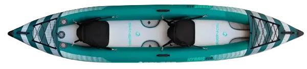 The Hybris is a capable open-cockpit recreational inflatable kayak for 1 or 2 paddlers with welded tubes that utilizes many of the same high-tech materials and construction as the Tenaya. The HDDS drop-stitch floor provides structural rigidity. The Hybris incorporates a proprietary tarpaulin bottom for added durability. The classic kayak shape and basic feature-set is lightweight, easy to set up, or pack away.