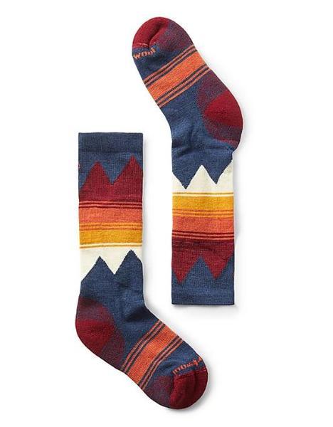 Keep your little ones warm and cozy all day on the slopes with the Kids' Ski Light Cushion Over The Calf Socks. With a playful mountain print, a flat knit toe seam for additional comfort, and the warmth of Merino wool, even the smallest skiers can go far and feel good.