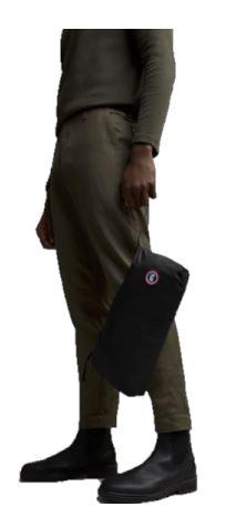 - 3 exterior pockets: chest pocket, 2 lower pockets. All pockets have zipper closures