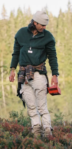 Constructed of Italian Fleece and Scottish Waxed Cotton, this piece serves as your softest companion in the crisp autumn air. Featuring our signature chest pocket, this fleece offers easy access to the tools and treasures essential in camp or around town. Applied pockets, such as these, are derived from the design of Roald Amundsen, who often retrofit his gear in camp, as needed.