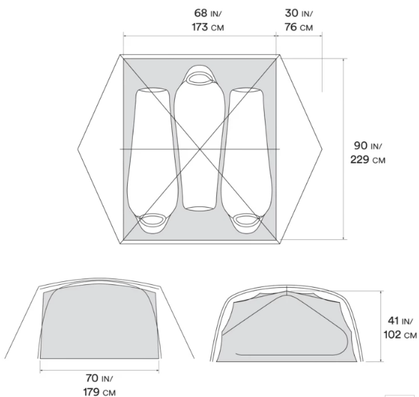 - Tent Floor Area: 42.5 sq ft / 3.9 sq m