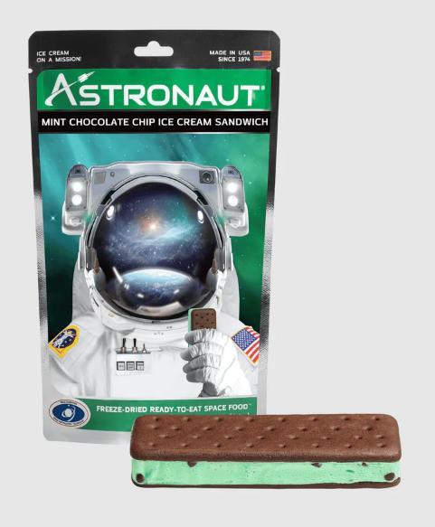 - Freeze-dried mint chocolate chip ice cream sandwich