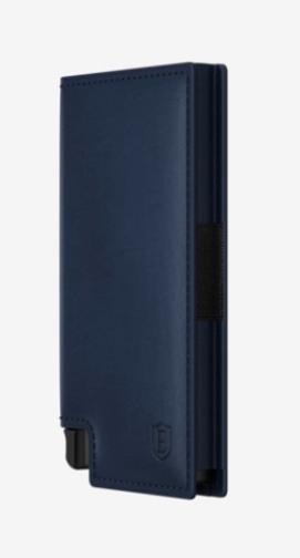 Our flagship leather smart wallet, perfect for slim storage and quick card access. The built-in aluminum cardholder fans out your cards at the click of a button and protects them against RFID skimming. Holds 1-12 cards and bills.