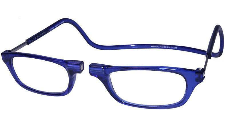 Clic Reading Glasses use a unique patented neodymium magnetic system allows the glasses to come together at the bridge. The head band is form-fitting and wraps around your head to ensure a snug, comfortable fit. Putting them on is simple. Just place the band around your head and let the magnets draw together at the bridge. Want to take them off? No problem. Just pull the magnets apart and the glasses will hang comfortably around your neck. That way you know exactly where they are when you need them again.