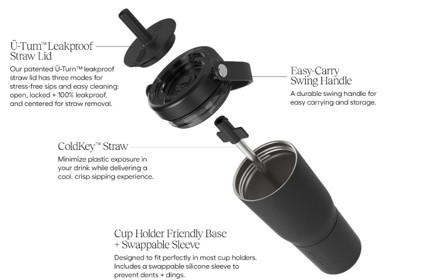 Made for life on the go, the Resa 25oz combines a 100% leakproof locking lid, built-in silicone swing handle, and our ColdKey™ stainless steel straw for a spill-free sip every time. With a swappable sleeve to protect against dents and dings, and temp retention that keeps your drinks cold for 24+ hours, it’s the ultimate travel companion — plus, most finishes are dishwasher safe for easy cleaning.