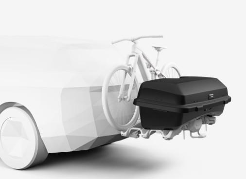 Thule Santu is a hard-shell hitch cargo box that neatly fits on our top-tier bike carriers Thule Epos and Thule EasyFold XT (extra mounting kit required for Thule EasyFold XT, sold separately). With this practical cargo box, you can now use your Thule Epos 2-bike and Thule EasyFold XT bike carriers to transport either bikes or gear, and your Thule Epos 3-bike to carry both at once. The aerodynamic low profile reduces wind drag and leaves rooftop space for more luggage.