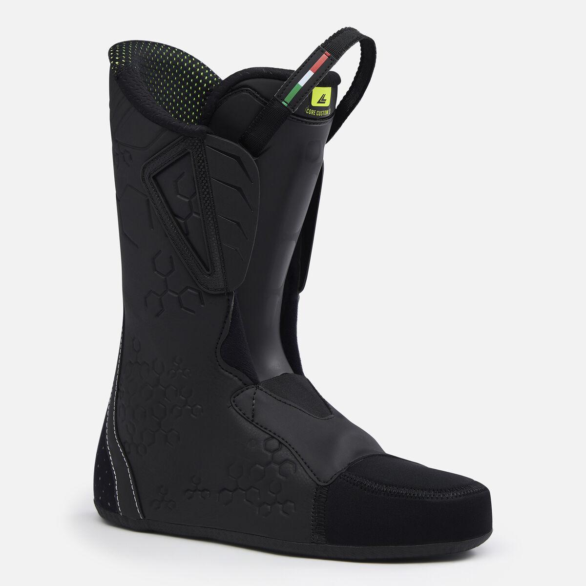 More power and more control with less energy. The Lange Shadow 110 HV ski boots bring a new level of power transfer, vibration absorption and comfort to all-mountain skiing. Our Assisted Performance System amplifies your input to the boot through the mechanical advantage of our Dual Pivot and Suspension Blade technology. The design boosts input by up to 26%, giving you more power and control with less energy. The boot's clean, consistent flex is combined with increased shock absorption through the shell for enhanced snow feel and contact. Like a full suspension bike, the combination lets you ski longer and more efficiently. Together with a 110-rated flex, this boot gives intermediate skiers a strong platform for pushing their skiing forward. At 102mm wide, our hig-volume last complements the thermoformable liner to offer all-day comfort.