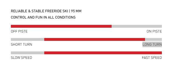 With the Stormrider 95, there are practically no limits. Fresh snow as well as groomed slopes are child’s play for this ski. Its completely revised construction, geometry and binding point, which is a little further forward, means you can enjoy better manoeuvrability and even more skiing fun. Gliding through the fresh powder or carving on perfectly groomed slopes? Only you can decide what your next day’s skiing should be like.