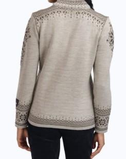 Celebrating Dale of Norway's 140th Anniversary, this jacket pays homage to the Norwegian knitting tradition they've been a part of for 140 years. Made with 100% long-lasting lightweight wool, this classic jacket features the traditional Norwegian eight-petal rose, a long-time motif of ours. The rose is updated with softened edges, making a feminine form with rounded petals. Flattering, braided side panels and the letters CXL, the Roman numerals for 140, discretely integrated in the back, tops it off.