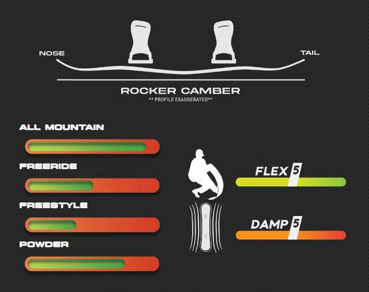 Proven worldwide by riders of all levels and the first choice for one of the fastest rising female snowboarders in the game, Iris Pham, the award winning, mid-flex, time tested Infinity is perfect for any condition. Carbon VXR Laminate Technology provides power and an agile response to the ends of the board while maintaining torsional control. A slightly set back stance and Rocker Camber Profile create an all-terrain deck that excels on hard pack, powder, and park — versatility at its finest.