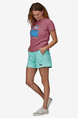 The Summit Swell graphic is inspired by a favorite photo from the 1968 film "Mountain of Storms" that shows the crew's ramshackle sedan on a dusty road headed to Cerro Fitz Roy—imagine the car becomes a surf boat and the road a glassy sea. We'll take you there. The artwork is screen-printed on a tee made from 100% postconsumer recycled fabric. By utilizing fabric scraps and recycled bottles, we reduce our reliance on virgin raw materials. Fair Trade Certified™ sewn.