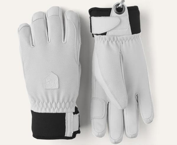 Army Leather Patrol Female is a warm ski glove with clever functions. It is built on the same robust concept as Hestra's Heli Ski glove but is designed to fit inside the jacket sleeve with a comfortable neoprene cuff that encircles the wrist. Fingers and palm are made of impregnated goat leather and the backhand uses a flexible, weather resistant softshell fabric. A fleece liner with synthetic insulation keeps fingers warm even in low temperatures, and can easily be removed to wash or dry. You can also exchange the insulation with a thinner liner to adjust the warmth if you are hiking and are sweating more, for example. A wrist strap reduces the chance of dropping the glove, and a carabiner and eyelet let you fasten it to a belt loop if you have taken off the glove to work with your hands. A durable and reliable companion for those spending long days outdoors in the snow and cold, and who prefer staying away from the ski resort and its comforts.