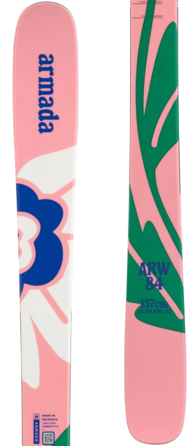 The Armada ARW 84, featuring art by Laura Mason, is a durable women’s freestyle ski built to crush the park and dominate the whole mountain. Its lightweight cap construction keeps swingweight low for effortless spins, while the twin-tip shape and versatile waist make it ready for anything from rails to side hits. The Hybrid Poplar/Composite Core blends strength, energy, and a smooth, responsive feel, paired with AR Freestyle Rocker for predictable, hook-free performance in any snow. With a tough 2.5 Impact Edge, low-maintenance S7 Base, and AR50 Sidewall for the perfect balance of durability and agility, this is the most versatile women’s freestyle ski for riders pushing their progression.